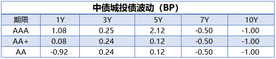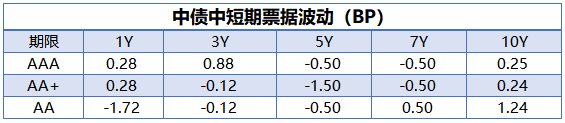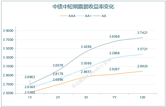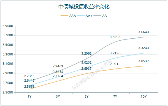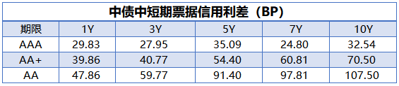 中债5年中短期票据(AAA)收益率报2.8655%,下行0.50BP;中债5年城投债(AAA)收益率报2.8937%,上行2.12BP。