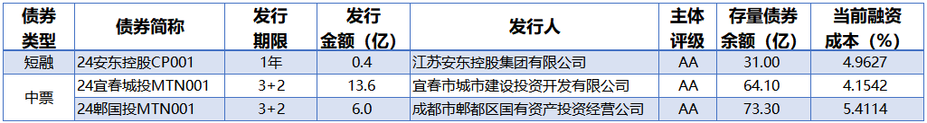 在信用债方面,金融机构债发行6只,共155.0亿元;短融发行4只,共16.2亿元;中票发行21只,共187.3亿元;公司债发行15只,共111.3亿元;资产支持证券发行6只,共11.0亿元。